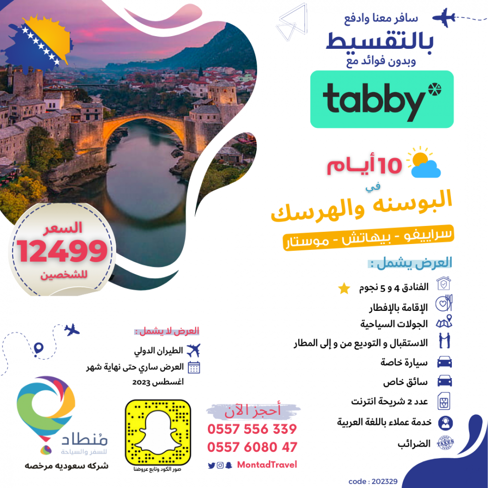 برنامج سياحي في البوسنه لمدة 10 ايام لشخصين في سراييفو و بيهاتش و موستار